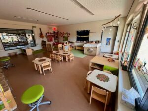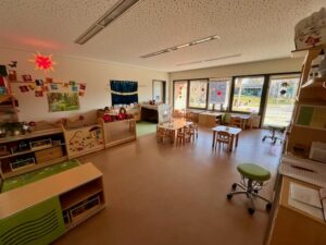 | Anzahl Räume | 5 Gruppenräume (zzgl. Schlafräume im Krippenbereich), 1 Forscherraum, 1 Therapieraum, 1 Mehrzweckraum, 2 Gärten 3000 qm (Kindergarten und Krippengarten) |